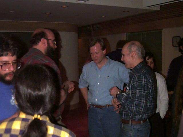Since Cameron Claussen couldn't make the party from Colorado, we decided to document the party in photographs for her. I borrowed an Apple QuickTake 100 from the BBN Education department and shot some pictures. Here they are. They are unedited and in chronological order. You can click on the small pictures to see larger images.